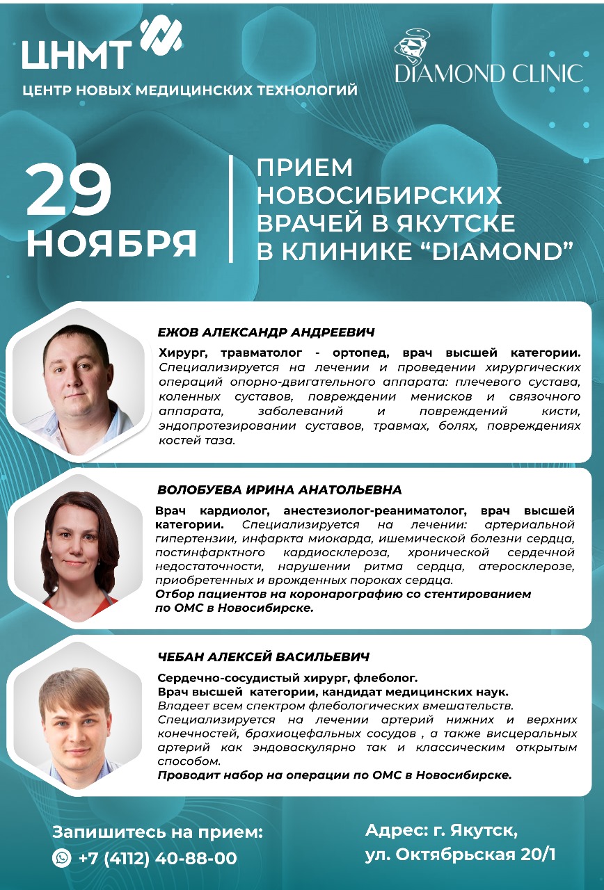 ПРИЕМ НОВОСИБИРСКИХ ВРАЧЕЙ В «ДАЙМОНД КЛИНИК»